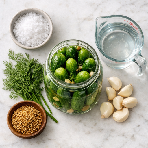 Les cornichons fermentés n'utilisent que du sel et de l'eau. Les concombres sont immergés dans une saumure (généralement 2 à 3 % de sel en poids), et les bactéries Lactobacillus naturellement présentes à la surface des concombres commencent à transformer les sucres en acide lactique. Ce processus d'acidification conserve les concombres et produit la saveur complexe et acidulée associée aux cornichons de charcuterie traditionnels et aux cornichons aigres d'Europe de l'Est. Les cornichons fermentés contiennent également des cultures vivantes (probiotiques) — à condition qu'ils n'aient pas été pasteurisés après la fermentation.